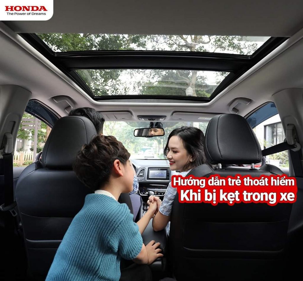 – Hướng dẫn trẻ tìm đến khoang lái phía trước và bấm còi xe báo hiệu, 99% xe hiện nay còi xe vẫn hoạt động dù xe tắt máy