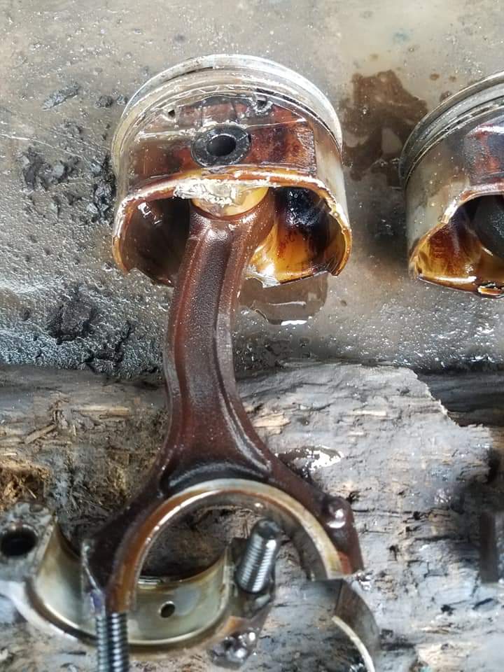 Hậu quả của thủy kích đấy ạ… Xe đi vào vùng ngập nước, nước lọt vào động cơ qua cửa hút gió, tràn vào buồng đốt và xilanh gây ra thay đổi nhiệt độ và áp suất đột ngột. Trong xilanh không phải là hỗn hợp khí nén mà là nước, nước thì không nén được nên nó dội ngược trở lại gây cong gãy tay biên. Như này nhẹ nhàng thì làm lại máy, nặng thì phải thay máy luôn!
